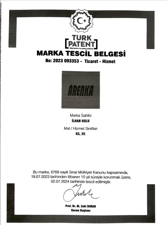 TÜRK PATENT MARKA TESCİL BELGEMİZ